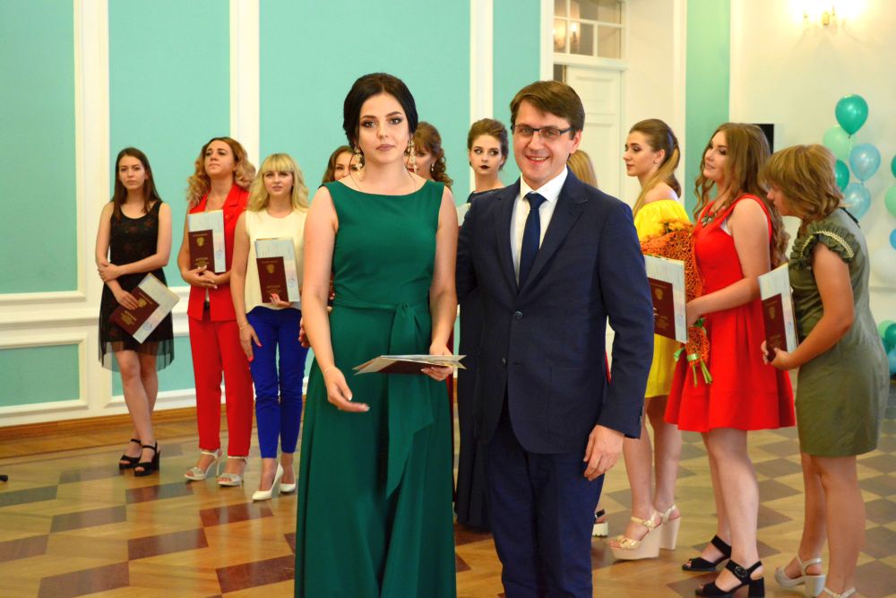 Красные дипломы выпускникам вручил почетный гость праздничного вечера – проректор по международному сотрудничеству Белгородского госуниверситета Владислав Кучмистый.