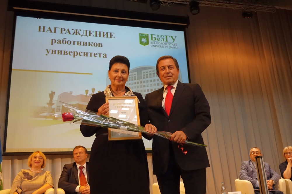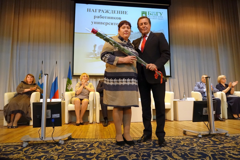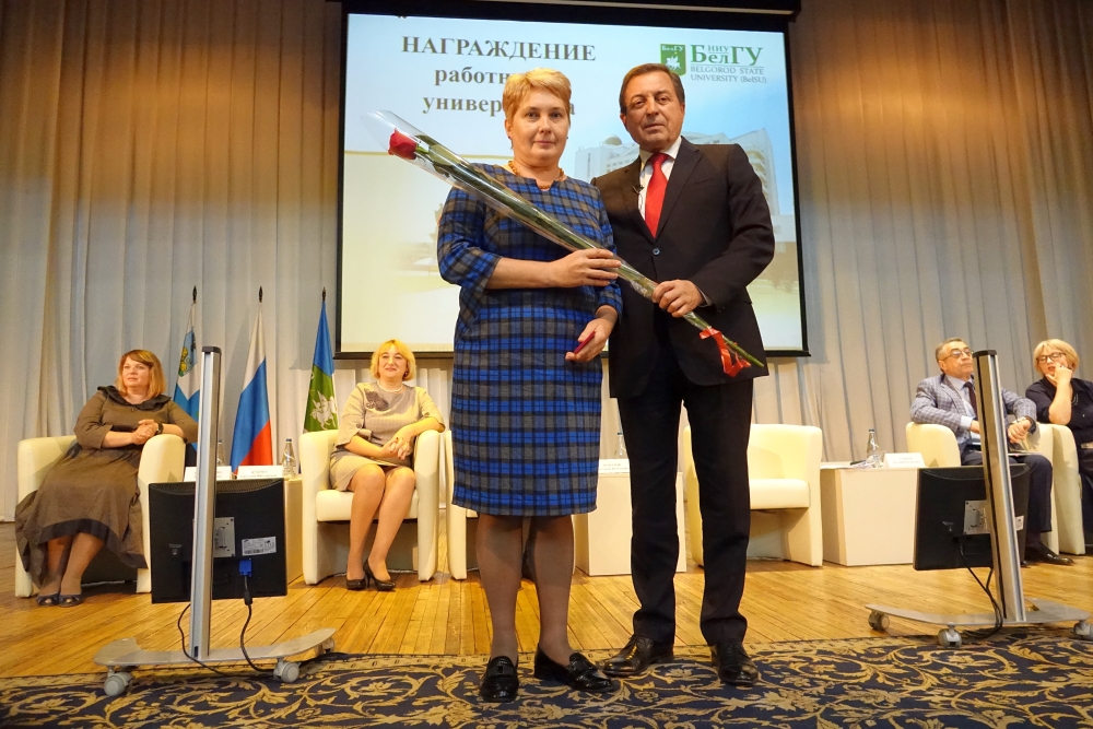 В завершение конференции по традиции состоялось награждение отличившихся сотрудников университета. Ректор вручил почётные грамоты Министерства образования и науки РФ, благодарственные письма департамента внутренней и кадровой политики, благодарности администрации города Белгорода, почетные грамоты и благодарности НИУ «БелГУ», удостоверение «Ветеран труда НИУ «БелГУ», почётные грамоты БРО Профсоюза работников народного образования и науки.
