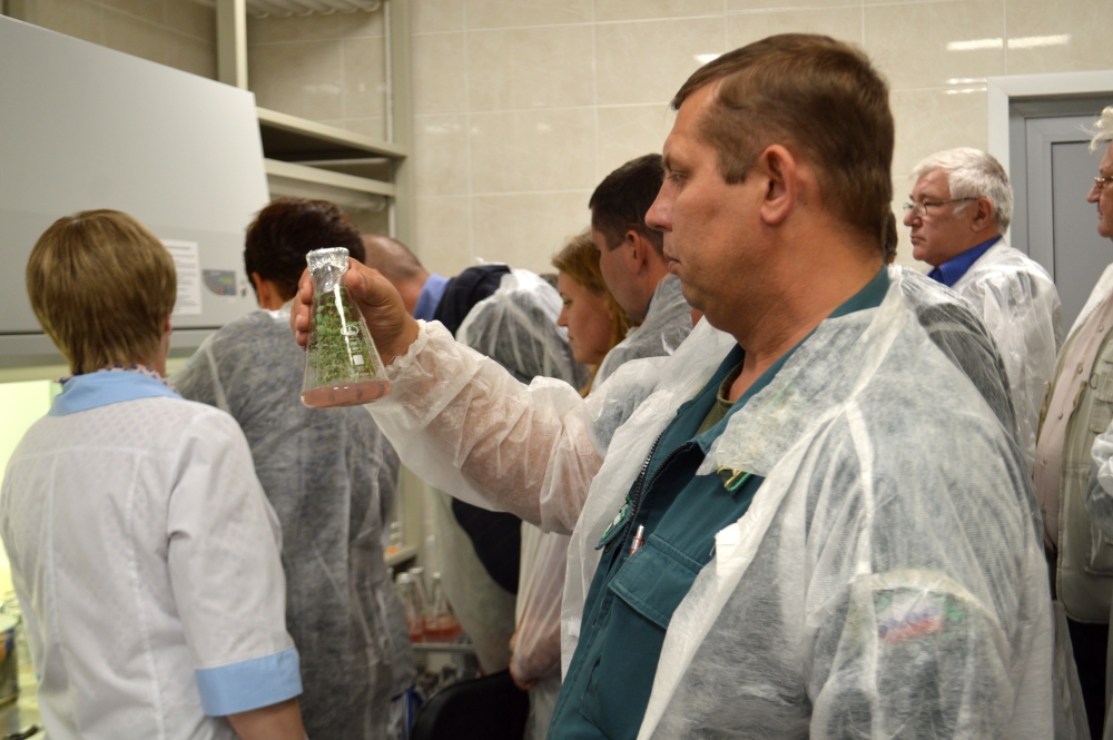 Для гостей НОЦ «Ботанический сад» была организована экскурсия в лабораторию биотехнологии растений, где они смогли увидеть результаты работы биотехнологов, в том числе адаптированные растения, прошедшие все стадии клонального микроразмножения.