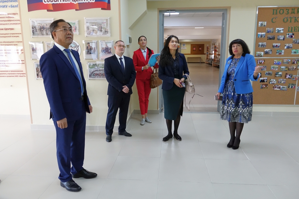 В НИУ «БелГУ» состоялся визит советника-посланника Посольства КНР в РФ Юй Цзихай и второго секретаря Посольства КНР в РФ Ван Хуэй. Экскурсию по университету почётным гостям провели проректор по международному сотрудничеству Владислав Кучмистый и проректор по воспитательной работе и молодёжной политике Светлана Острикова. Члены китайской делегации осмотрели выставку научных достижений НИУ «БелГУ», побывали в Центре гражданско-патриотического воспитания, геолого-минералогическом музее.