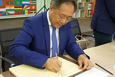 В завершение встречи почётным гостям подарили символ России – матрёшку. Советник-посланник Посольства КНР в РФ Юй Цзихай оставил запись в книге почётных гостей Центра межкультурной коммуникации НИУ «БелГУ».