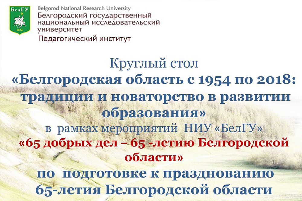 В заседании круглого стола приняли участие дирекция института, преподаватели, будущие педагоги и работодатели. Организатором мероприятия выступила кафедра педагогики факультета психологии. Круглый стол был приурочен предстоящему 65-летию Белгородской области и посвящён событиям и достижениям Белгородчины в области образования.