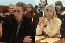 Участники внутривузовского гранта «Педагогические династии» – студентка 3 курса историко-филологического факультета Евгения Якименко и учитель физической культуры МБОУ «СОШ №11 г. Белгорода» Игорь Махов сообщили о результатах своей работы по династии Тонковых и Маховых.