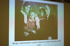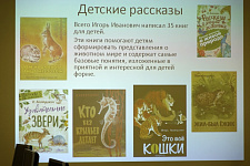 Игорь Акимушкин – выдающийся советский биолог, писатель и сценарист фильмов о живой природе. Он автор 96 научно-художественных, научно-популярных и детских произведений о мире животных: «Следы невиданных зверей», «Тропою легенд», «Приматы моря», «Трагедия диких животных», «Мир животных» и др. Магистранты рассказали о жизни, работе и творчестве учёного. Сергей Юсупов подготовил доклад о жизни учёного, Екатерина Жидоморова рассказала о шеститомном сочинении Игоря Акимушкина – «Мир животных». С сообщением о произведениях Игоря Акимушкина, написанных для детей, среди которых – «Жила-была белка», «Жил-был ежик», «Животные-строители», выступил Александр Быльченко. Яна Варнавская прочла рассказ, посвящённый импринтингу – мгновенному запечатлению образа при формировании врожденных поведенческих актов у животных. Евгений Селеверстов рассказал о научно-популярной книге Игоря Ивановича Акимушкина «Следы невиданных зверей», в которой речь идёт о встречах людей с фантастическими существами. Алина Селютина представила сообщение о последней работе киноработе учёного – «По следам снежного человека». Картина начинается с рассказа о том, как появился интерес к таинственной натуре снежного человека, а в дальнейшем представляет различные мнения относительно того, существует ли это создание на самом деле, и если существует, то кем является, на кого оно похоже. Вероника Беляева продемонстрировала фрагменты фильма, вызвавшие споры присутствовавших относительно возможности существования снежного человека. По словам модератора заседания Маргариты Кононовой, своим творчеством Игорь Иванович Акимушкин сблизил мир людей с уникальным миром дикой природы.