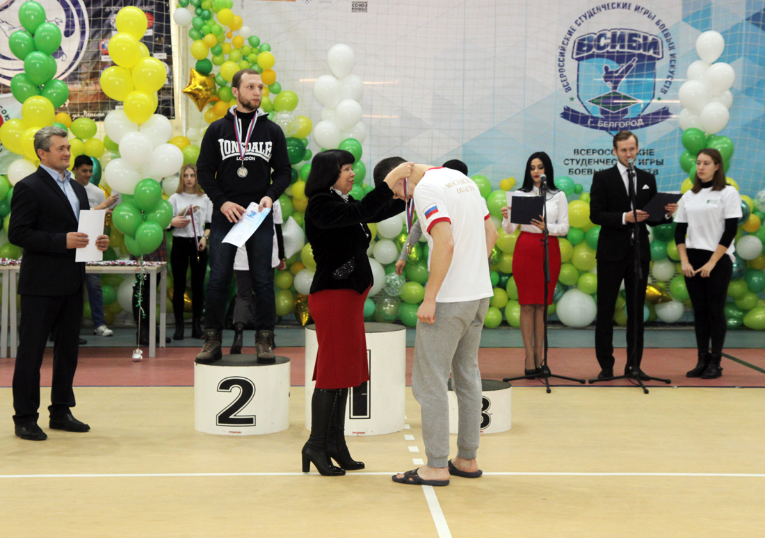 Награждение, а медалей различного достоинства и грамот удостоились около 170 студентов, проводила Светлана Острикова и главный судья соревнований, представитель РСБИ в Белгородской области Олег Бекетов. Отметим, что в 2018 году НИУ «БелГУ» стал победителем всероссийского конкурса молодёжных проектов–грантов среди образовательных организаций высшего образования, в рамках которого реализуется проект «Всероссийские студенческие игры боевых искусств ЦФО». Грант – «Всероссийские студенческие игры боевых искусств ЦФО» реализуется при поддержке Федерального агентства по делам молодёжи (Росмолодёжь) и его Ресурсного молодёжного центра.