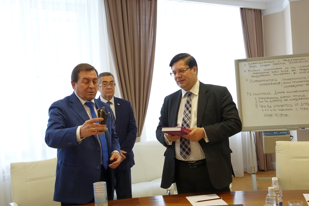 Во встрече ректора с академиком приняли участие проректор по науке Игорь Константинов, и.о. проректора по реализации программ стратегического развития Андрей Пересыпкин, директор юридического института Евгений Тонков, заместитель директора юридического института по научной и международной деятельности Алевтина Новикова.