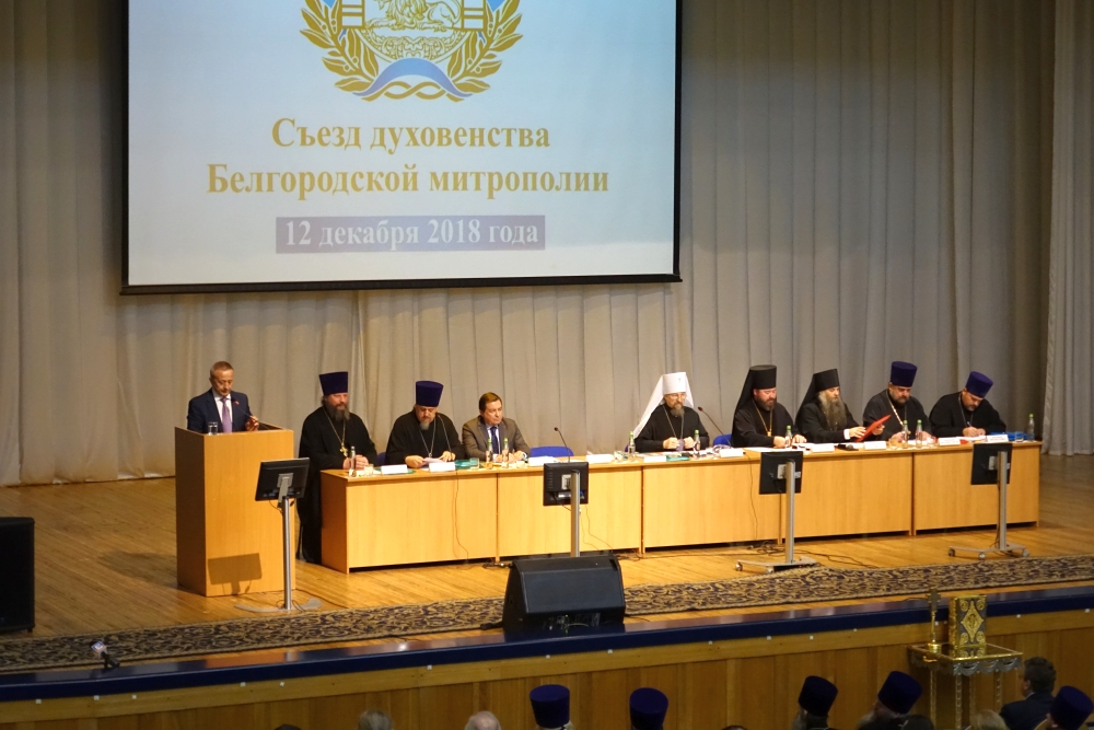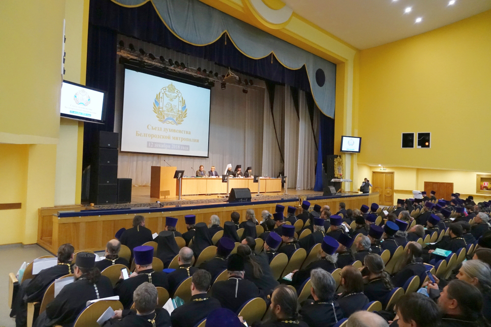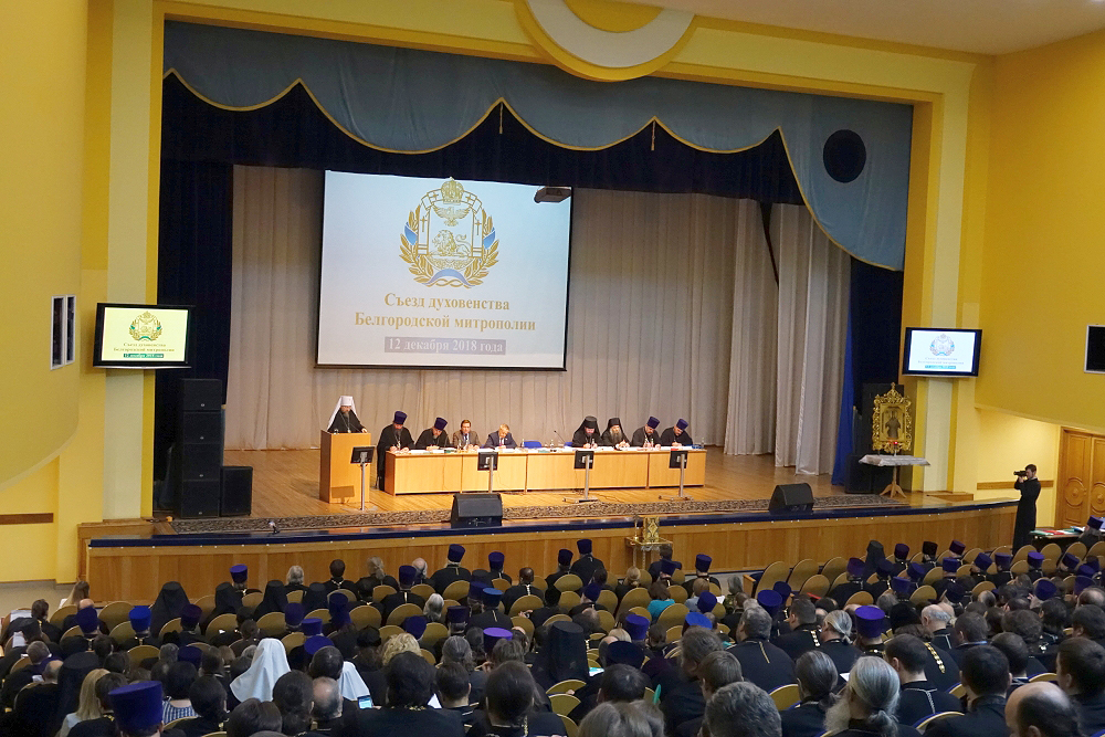 С молебна началось ежегодное мероприятие, участниками которого стали представители трёх епархий (около 400 священнослужителей) Белгородской митрополии, светской власти. Митрополит Белгородский и Старооскольский Иоанн в приветственном слове поблагодарил ректора НИУ «БелГУ», профессора Олега Полухина за предоставленный зал МКЦ для проведения съезда и поздравил всех с Днём Конституции РФ. Владыка Иоанн говорил об итогах уходящего года и перспективах на новолетие – год 2019. Митрополит рассказал о миссионерской деятельности Русской православной церкви в мире и роли Белгородской и Старооскольской митрополии в этом процессе, о строительстве храмов и духовно-нравственном воспитании молодёжи.