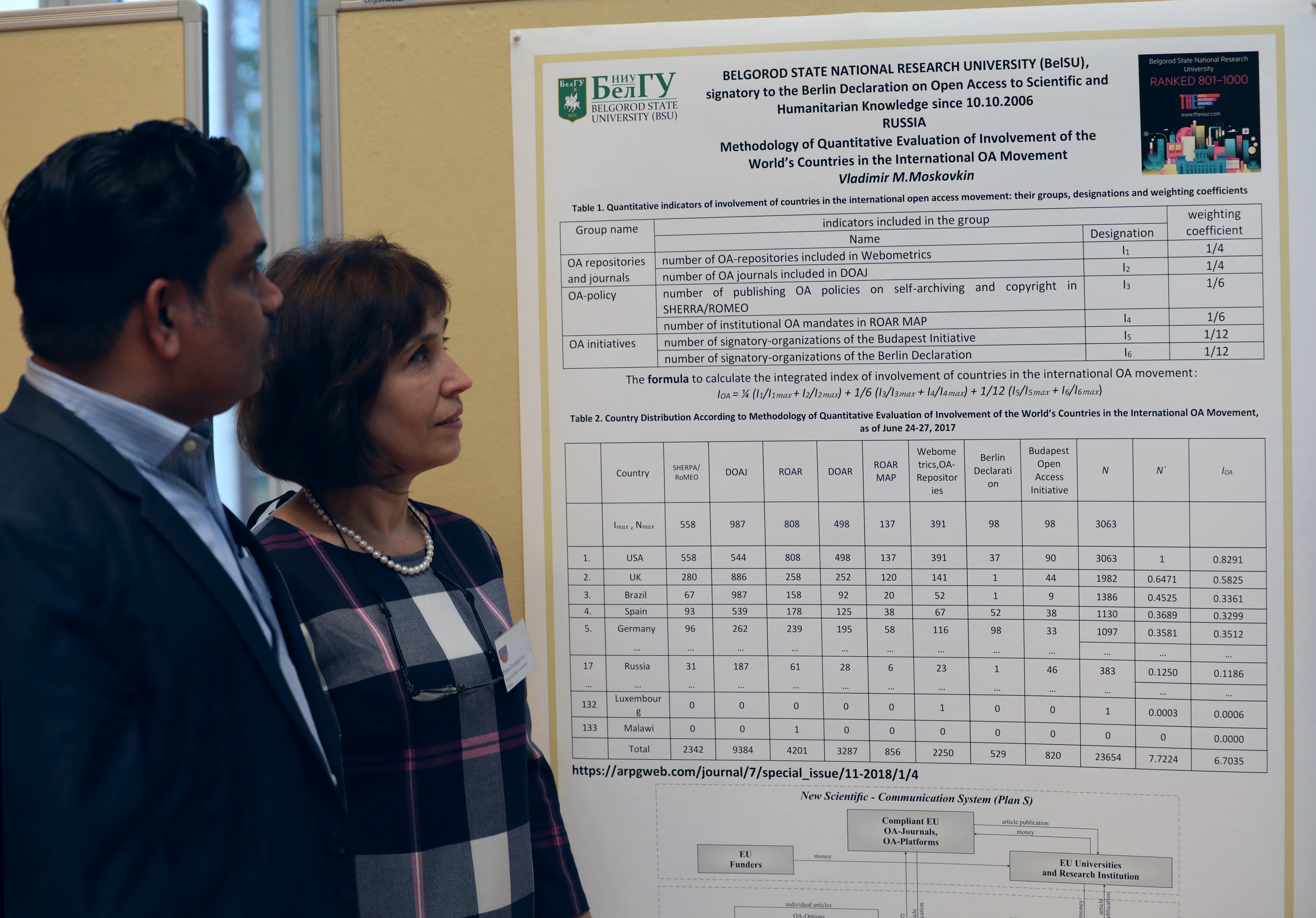 НИУ «БелГУ» представил на конференцию стендовый доклад, подготовленный профессором кафедры мировой экономики института экономики и управления Владимиром Московкиным и доцентом кафедры английского языка и методики преподавания Олесей Серкиной, отражающий участие НИУ «БелГУ» в процессе перехода к модели открытого доступа.
