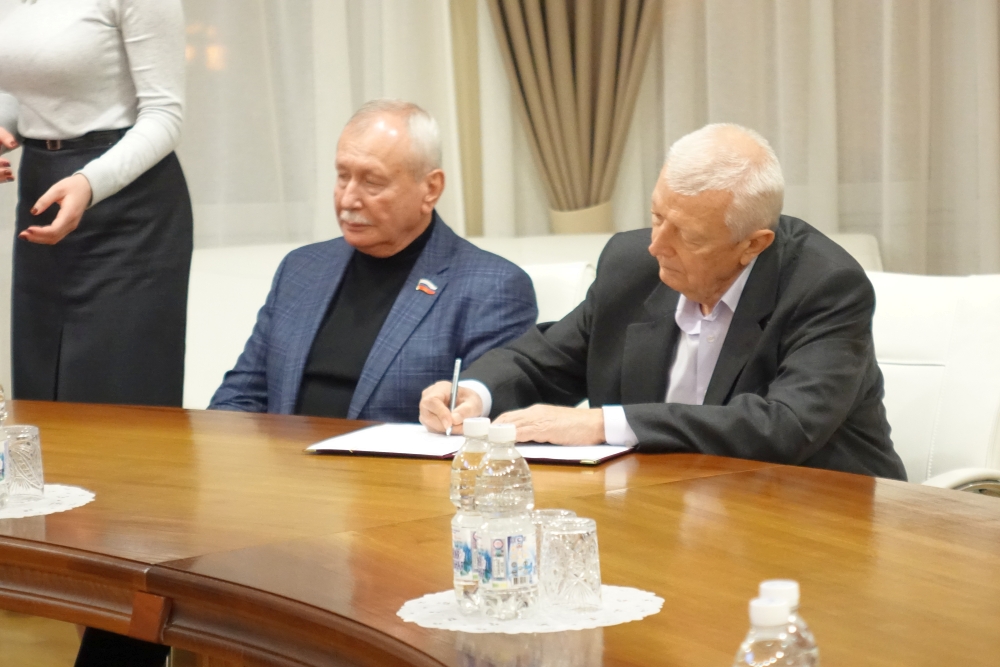 Ректор Белгородского госуниверситета, профессор Олег Полухин и академик РАН Валерий Леонтьев подписали договор пожертвования о передаче печатных изданий личной библиотеки учёного университету