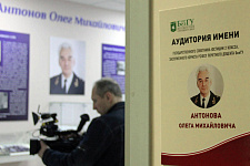 Открыть именную аудиторию государственного советника юстиции 2 класса, заслуженного юриста России, почётного доцента НИУ «БелГУ» Олега Михайловича Антонова собрались ректор НИУ «БелГУ» Олег Полухин, директор юридического института Евгений Тонков, председатель Белгородского областного суда Алексей Шипилов, прокурор Белгородской области Николай Саврун, начальник Судебного департамента, председатель Ассоциации выпускников юридического института Сергей Захаров, а также прокуроры городов и районов Белгородской области – выпускники юридического института разных лет, принявшие благотворительное участие в оснащении аудитории, которая будет использоваться в учебном процессе. Почётное право перерезать красную ленту было предоставлено ректору НИУ «БелГУ» Олегу Полухину, прокурору Белгородской области Николаю Савруну и председателю студенческого совета юридического института Карине Хоборовой. Аудитория оснащена необходимыми средствами мультимедиа. Её украшением являются стенды, на которых запечатлены вехи биографии, фотографии Олега Антонова. О жизненном пути Олега Михайловича Антонова рассказал собравшимся студент третьего курса юридического института Евгений Чередник.