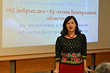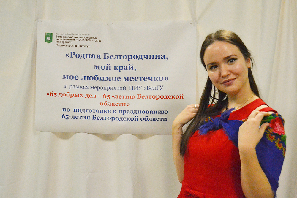 В педагогическом институте НИУ «БелГУ», по инициативе члена совета Центра гражданско-патриотического воспитания студенческой молодёжи НИУ «БелГУ», доцента кафедры педагогики Валентины Мусиной, состоялось мероприятие – «Родная Белгородчина, мой край, мое любимое местечко». Вечер-путешествие по страницам истории и культуры родного края было организовано в рамках акции «65 добрых дел – 65-летию Белгородской области».