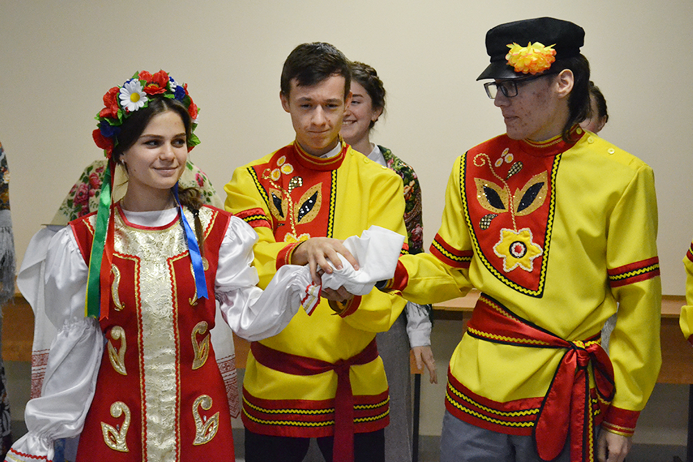 Особый колорит придала вечеру сценка сватовства на Белгородчине, написанная студенткой Викторией Малышевой и исполненная на «суржике» - смешанном русско-украинском деревенском языке, на котором говорит значительная часть сельских жителей области.
