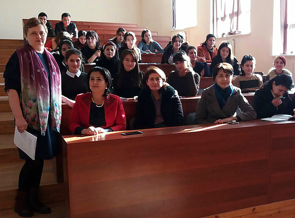 В рамках проведения профориентационой работы доцент кафедры педагогики Ольга Муромцева побывала в Каршинском колледже искусств. В КаршиГУ она провела научно-методический семинар по проблемам современного образования, использованию интерактивных технологий, организации научно-исследовательской деятельности студентов, а также провела открытые лекции и практические занятия по общей педагогике для студентов русских групп 2 и 3 курсов факультета иностранных языков.