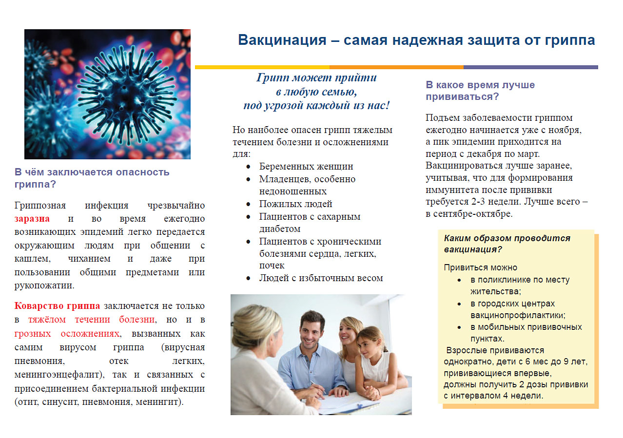 Одним из самых распространённых и опасных заболеваний в осенне-зимний период – является грипп. Грипп – это острое вирусное заболевание, которое поражает верхние и нижние дыхательные пути, сопровождается выраженной интоксикацией и может приводить к серьезным осложнениям. Из года в год жители практически всего мира поддаются атакам этого сложного недуга. Грипп и ОРВИ – близкие друг другу заболевания – и по способу заражения, и по основным проявлениям, однако это не одно и то же. Грипп вызывает большую интоксикацию, часто протекает тяжело и приводит к различным осложнениям.