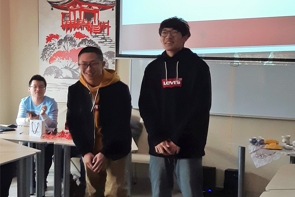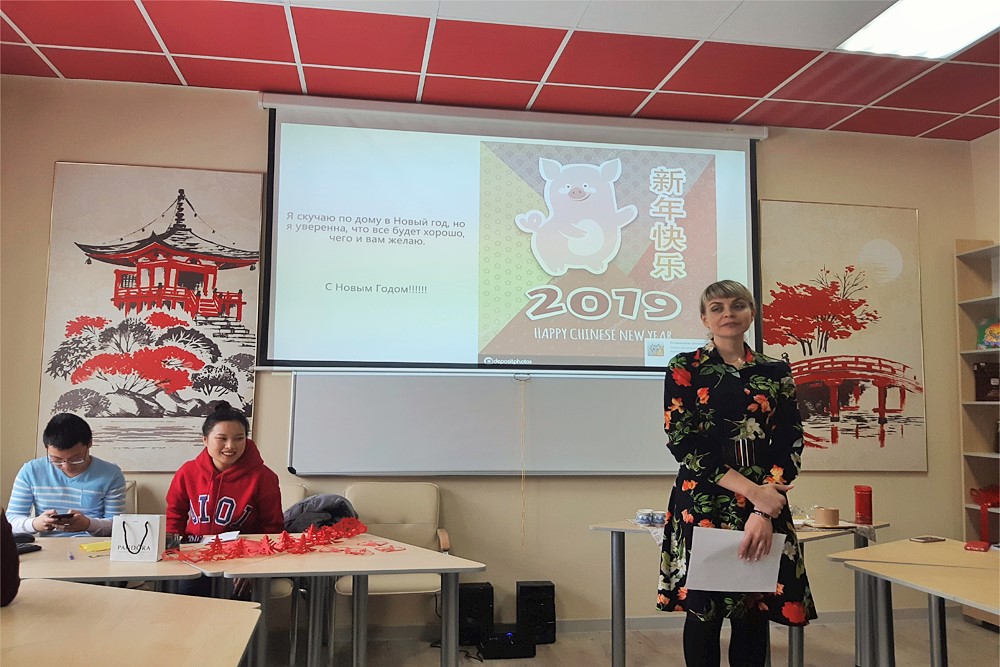 Дата празднования главного китайского праздника зависит от лунного календаря. Цзи Цзиньсян поделилась детскими воспоминаниями о Новом годе в Китае, представив презентацию об особенностях подарков, традиционном символе и истории празднования. Цзи Цзиньсян рассказала и об интересных фактах празднования Нового года в Китае: к примеру, о том, что красный цвет и шум фейерверков в Китае отпугивает мифическое существо «Год» в виде льва.