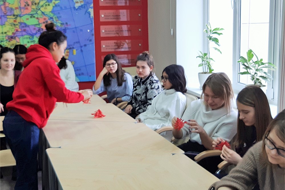 Инициатором мероприятия выступили студенты подготовительного факультета из Китая. Гости встречи – учащиеся 8-9 классов гимназии №5 г. Белгорода и их наставники: Татьяны Засыпкина и Тамара Колычева. Открыла встречу и поздравила китайских студентов куратор землячества Китая и Казахстана Светлана Фуникова.