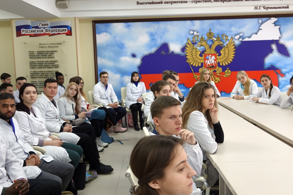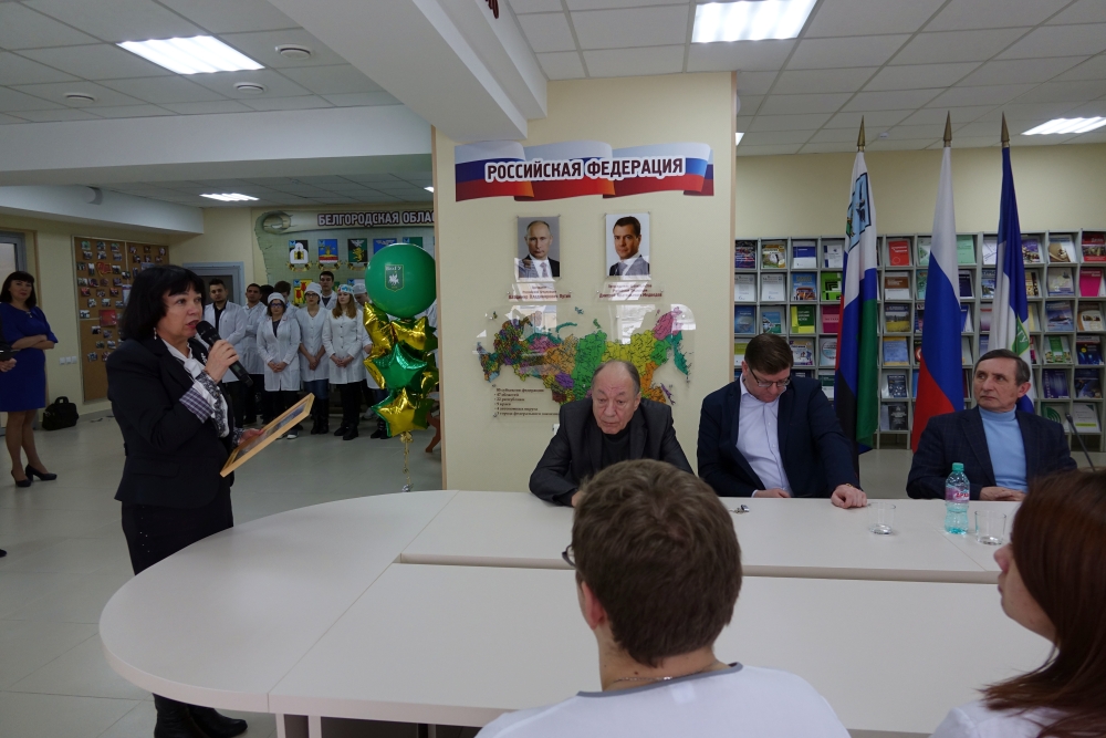 В ходе встречи в центре гражданско-патриотического воспитания, проходившей в рамках эстафеты «65 добрых дел навстречу юбилею области», Почётный гражданин Белгородской области Владимир Куликовский рассказал студентам о своей жизни и врачебной практике, а также поделился планами на будущее медицинского института.