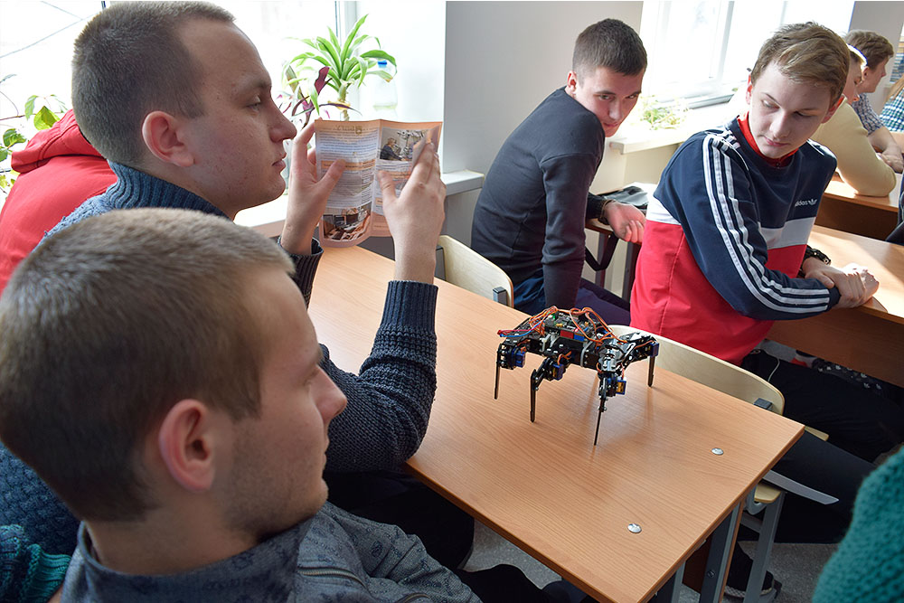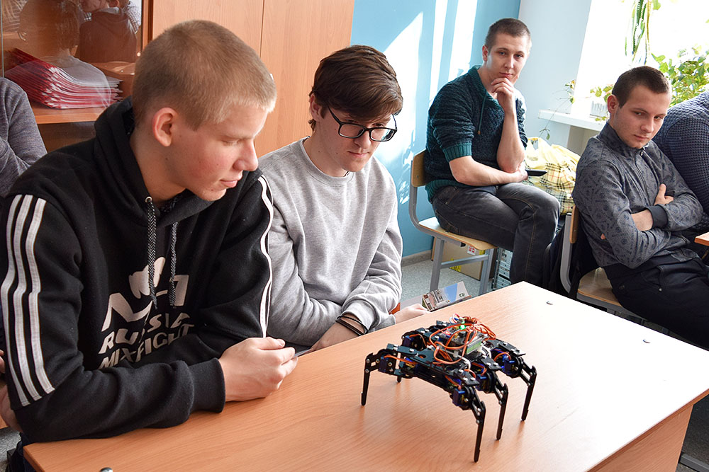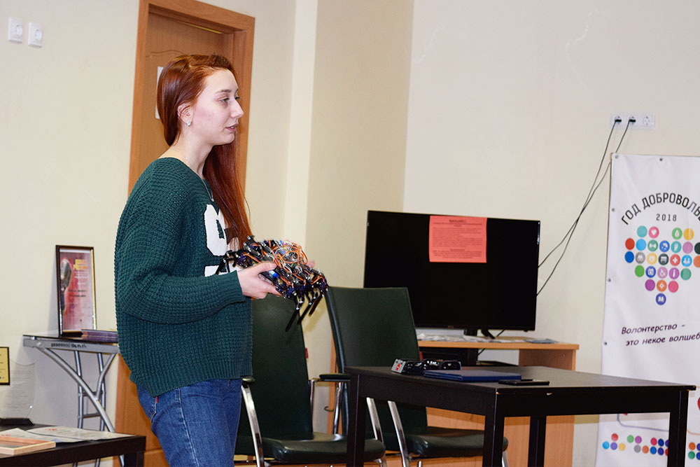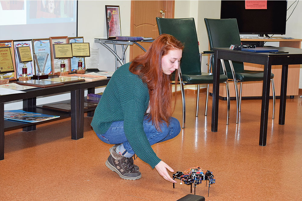 Студентка кафедры информационных и робототехнических систем Ксения Павленко продемонстрировала роботов, смоделированных студентами института в ходе занятий.