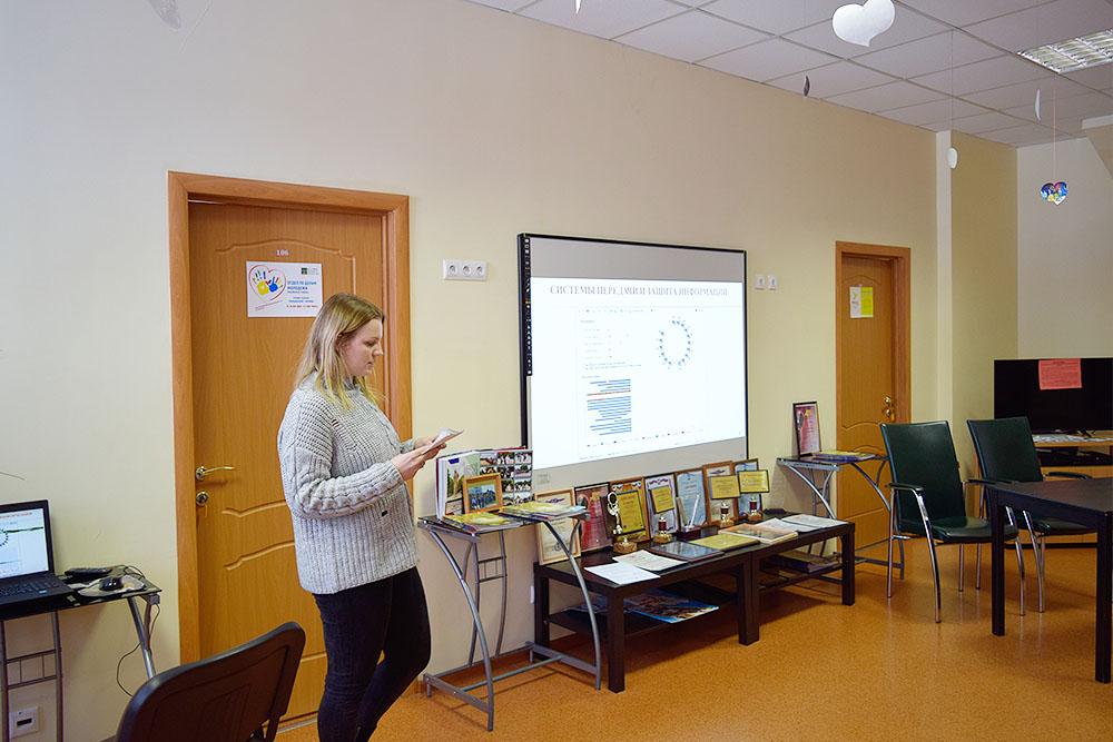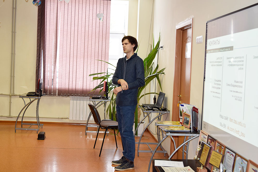 О достижениях университета в области цифровых технологий рассказал ассистент кафедры математического и программного обеспечения информационных систем Денис Батищев. Заместитель директора по программам развития и профориентационной работе Елена Ильинская поделилась преимуществами обучения на факультете «Инженерный спецназ».