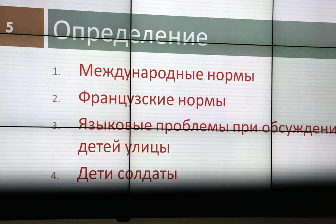 Лектор выделил главные причины, по которым дети оказываются в бедственном положении. Речь шла о низком уровне жизни, насилии в семье, надломленной психологии ребёнка, психологии и иерархии группы детей, эксплуатации несовершеннолетних преступниками. Ксавье Эммануэлли ознакомил слушателей с международными гуманитарными нормами, сообщил об опыте работы организации «Врачи без границ», получившей Нобелевскую премию мира. Эта организация помогает детям по всему земному шару.