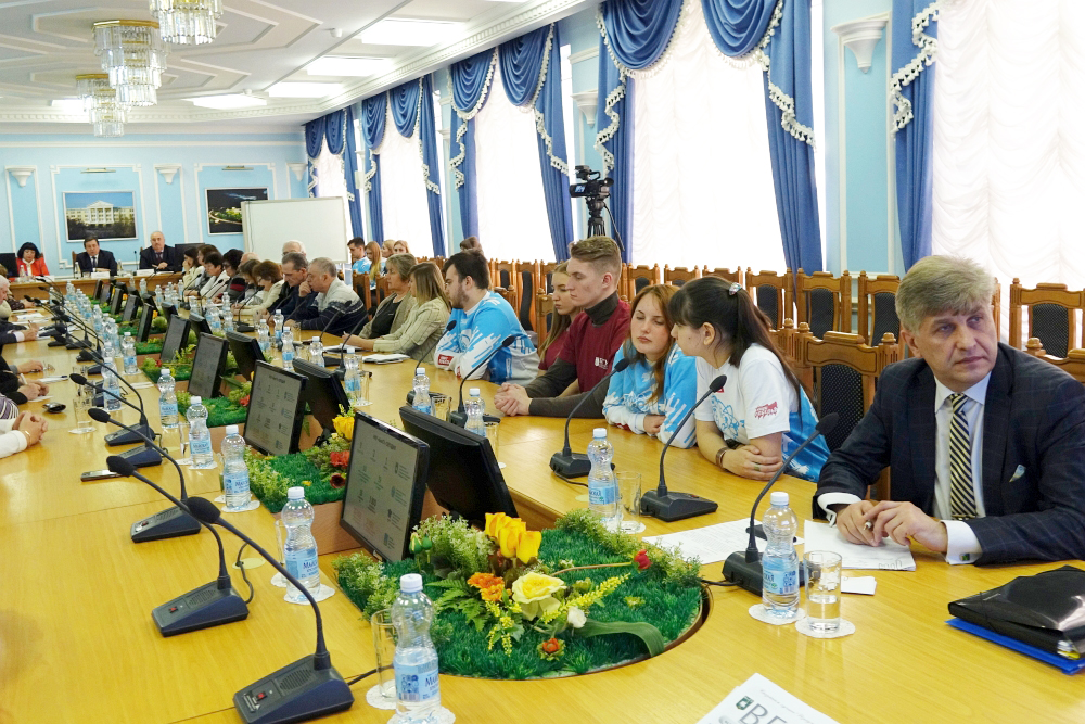 Во встрече принимали участие проректор по воспитательной работе и молодёжной политике Светлана Острикова, директор департамента социального развития вуза Татьяна Никулина, председатель профсоюзной организации Валерий Тимофеев, руководитель поликлиники НИУ «БелГУ» Оксана Белоусова, волонтёры университета.