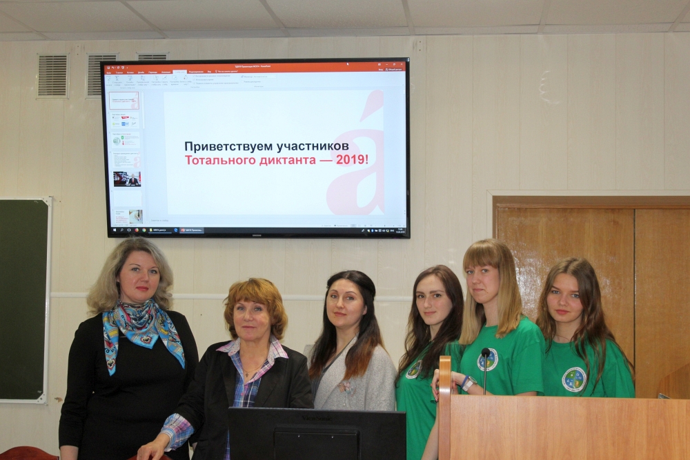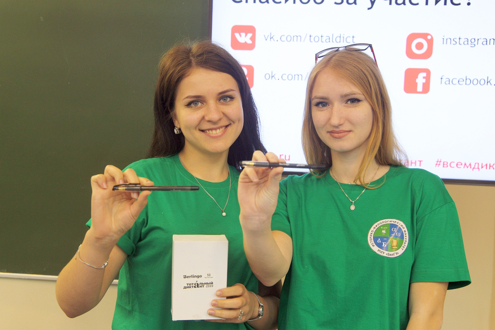 В 2019 году всемирный культурно-образовательный проект «Тотальный диктант» прошёл уже в шестнадцатый раз. В Белгородском государственном университете работало две площадки: на базе педагогического института и на факультете журналистики института общественных наук и массовых коммуникаций. На ежегодную акцию по проверке грамотности по русскому языку пришли более ста пятидесяти человек. Всего в Белгороде собрано 362 работы – на сто больше, чем в прошлом году.