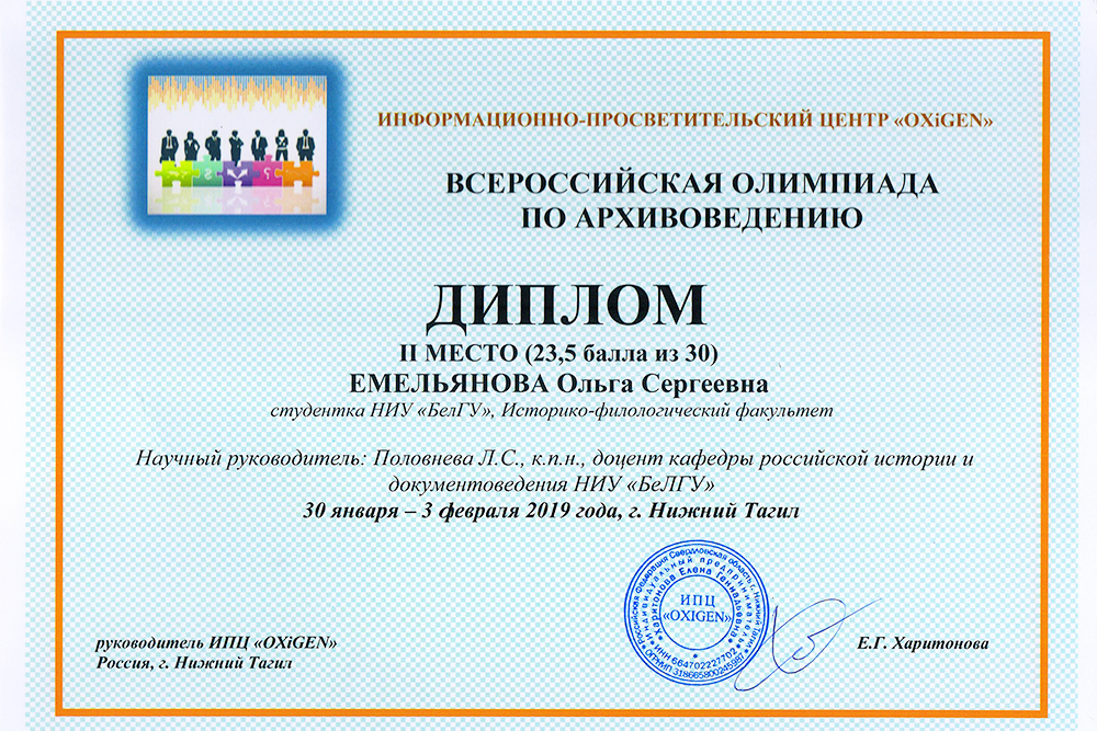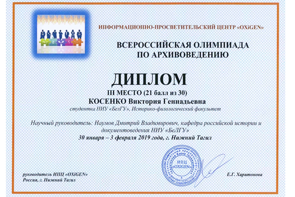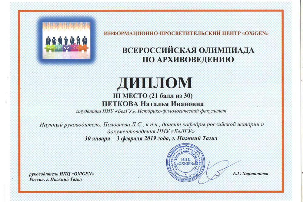 Студенты НИУ «БелГУ» – победители Всероссийской олимпиады по архивоведению