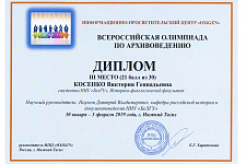 Олимпиада проводилась на базе информационно-просветительского центра «Oxigen» в г. Нижний Тагил. В ней приняли участие студенты историко-филологического факультета, обучающиеся по направлениям подготовки 46.03.02 (46.04.02) Документоведение и архивоведение, – Виктория Косенко, Наталья Петкова и Ольга Емельянова под руководством преподавателей кафедры российской истории и документоведения Людмилы Половневой и Дмитрия Наумова. Организатором олимпиады выступил информационно-просветительский центр «Oxigen», оценивало студентов представительное жюри. Участники олимпиады решали задания, объединенные в три блока: эссе, закрытый тест и открытый вопрос.