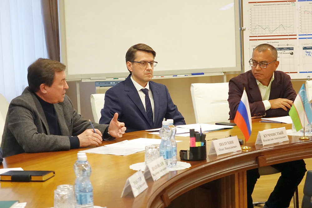 Проректор по учебной работе КарГУ Юсуп Эшкабилов подчеркнул, что для его вуза важно открыть обучение на русском языке по всем направлениям подготовки. По словам проректора по образовательной деятельности НИУ «БелГУ» Александра Маматова, узбекские коллеги заинтересовались системой рейтингования научно-педагогических работников, дистанционными технологиями обучения, изучением русского языка как иностранного. На встрече речь также шла о подготовке в НИУ «БелГУ» магистрантов и аспирантов из КарГУ. Проректор по международному сотрудничеству Владислав Кучмистый рассказал, что на сегодняшний день в разработке находятся три совместные образовательные программы: изобразительное искусство, русский язык и литература, иностранный язык (магистратура). По словам Владислава Анатольевича, сотрудничество будет развиваться и в рамках летней языковой школы НИУ «БелГУ». Ректор Белгородского госуниверситета Олег Полухин в заключение встречи отметил, что к новому учебному году необходимо будет разработать совместный алгоритм действий. Встреча завершилась обменом памятными сувенирами.