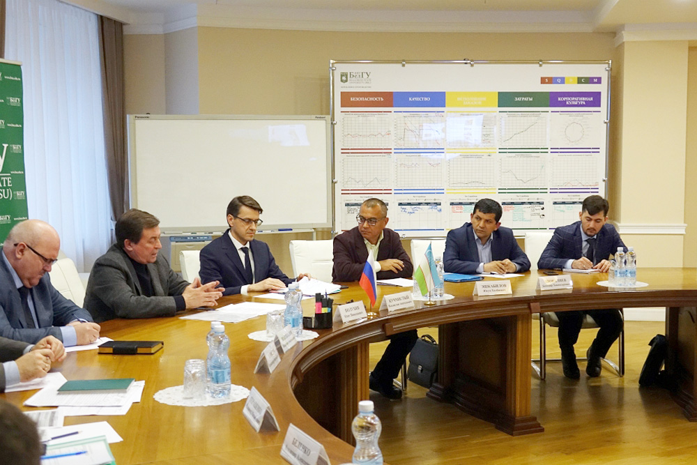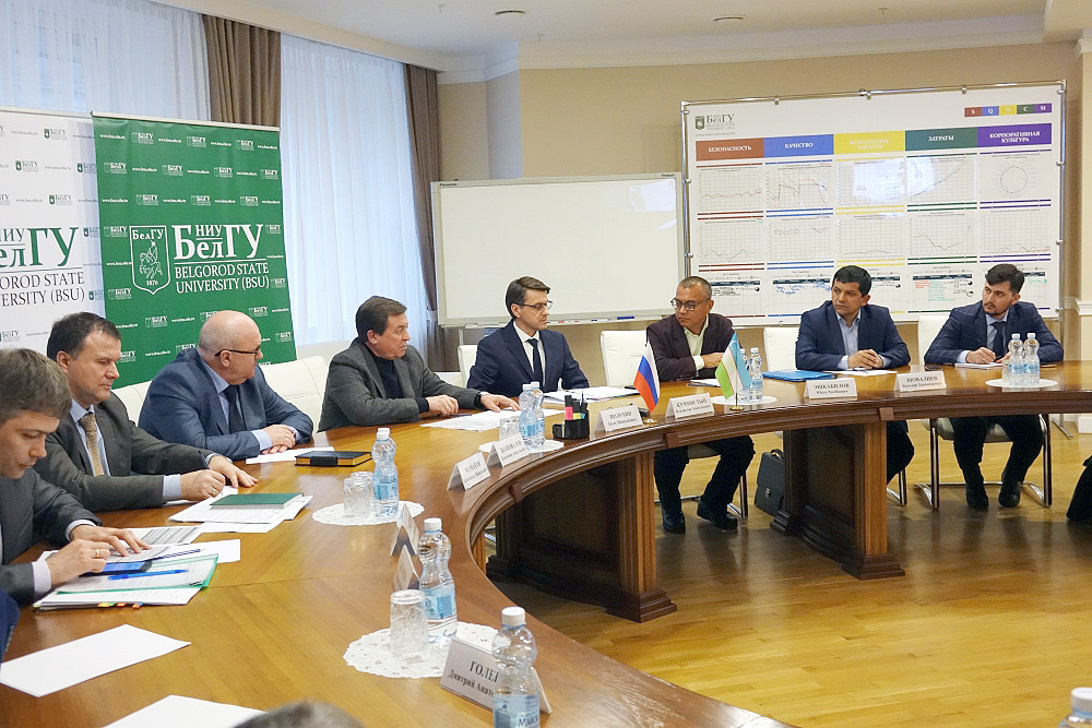 Гостями университета стали проректор по учебной работе КарГУ Юсуп Эшкабилов и заведующий Центром информационных технологий КарГУ Баходир Шовалиев. Представители Каршинского государственного университета в ходе визита посетили кампус НИУ «БелГУ» по улице Студенческой. Здесь представители вуза-партнёра обсудили с проректором по международному сотрудничеству Владиславом Кучмистым, проректором по качеству и дополнительному образованию Владимиром Шаповаловым и деканом историко-филологического факультета педагогического института Андреем Папковым соглашение об образовательном центре НИУ «БелГУ» и КарГУ. В ходе встречи партнёров речь шла о совместном образовательном проекте. Кульминацией пребывания узбекских коллег в Белгородском госуниверситете стала встреча с ректором, профессором Олегом Полухиным, на которой стороны обсудили перспективы дальнейшего сотрудничества.