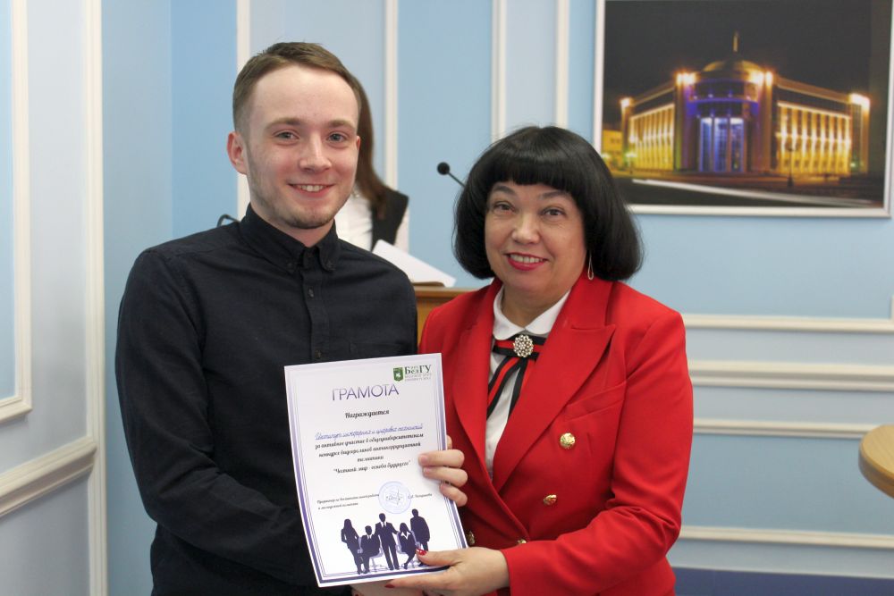 Участников и гостей приветствовала проректор по воспитательной работе и молодежной политике Светлана Острикова. Светлана Александровна сообщила о проведении в университете в марте-апреле конкурса видеороликов «Честный мир – основа будущего» и наградила его победителей. По итогам конкурса первое место присуждено команде юридического института, второе место разделили команды института экономики и управления и института общественных наук и массовых коммуникаций, третье место заняла команда педагогического института.