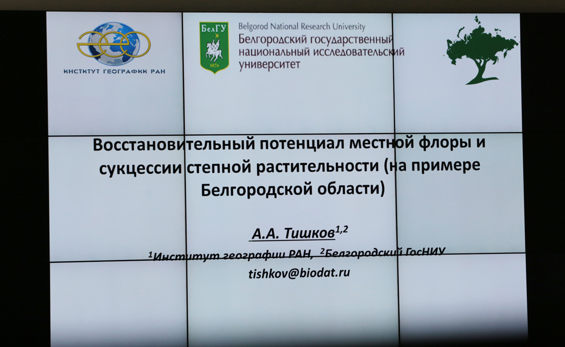 В институте наук о Земле состоялся научный семинар с участием члена-корреспондента РАН, доктора географических наук, заместителя директора по научным вопросам Института географии РАН Аркадия Тишкова, научного сотрудника Института географии РАН Светланы Титовой и сотрудника всемирного фонда дикой природы Константина Кобякова. Аркадий Тишков выступил перед студентами и преподавателями института наук о Земле НИУ «БелГУ» с лекцией о восстановительном потенциале местной флоры и сукцессии степной растительности на примере Белгородской области. Аркадий Александрович подчеркнул, что лекция о восстановлении степной растительности актуальна для студентов института наук о Земле, ведь некоторым из них (кто выберет научный путь) нужно будет решать экологические проблемы. Учёный рассказал о состоянии почв и растительного мира Белгородчины в прошлом и современной структуре агроландшафтов. На лекции речь шла об этапах сукцессии (восстановления), видовом разнообразии, агрессивном поведении инвазивных видов растений. Член-корреспондент РАН рассказал о роли степных палов и пожаров, о влиянии растительноядных животных на восстановление почв и растительного мира. Аркадий Алесандрович Тишков передал в дар университету ценные научные книги: «Век географии», издание об Институте географии РАН, «История заповедной системы России».