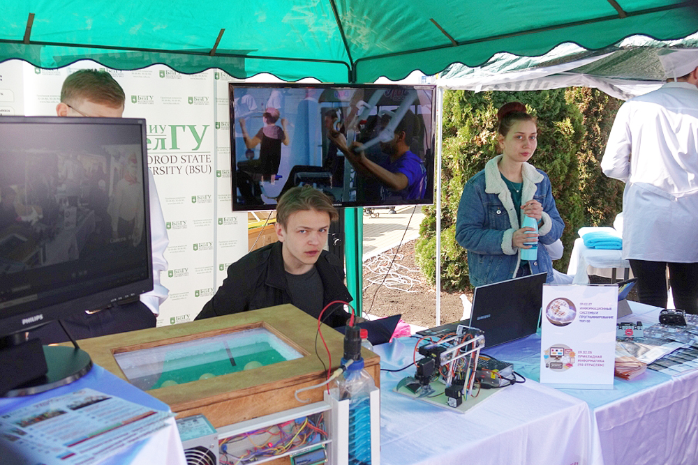Преподаватели и студенты колледжей НИУ «БелГУ» подготовили для гостей выставки интерактивные мастер-классы: студенты медицинского колледжа научили школьников и родителей основам чистки зубов, методике пеленания новорождённых, провели диагностику сердечно-сосудистой системы с помощью кардиовизора, показали, как выполнить массаж и провести сердечно-лёгочную реанимацию. Студенты инжинирингового колледжа продемонстрировали результаты изобретений будущих программистов: управляемых роботов и инкубатор, организовали творческую мастерскую и провели исследование продуктов питания на наличие нитратов, антиоксидантов, проверили свежесть и кислотность жидкостей. В павильонах НИУ «БелГУ» будущие абитуриенты и родители смогли получить консультацию о поступлении в колледжи НИУ «БелГУ» и в университет.