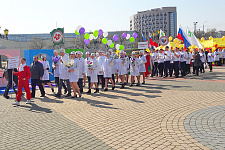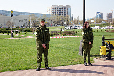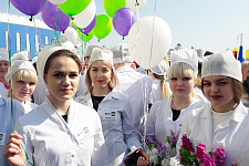Белгородский госуниверситет на параде представили студенты медицинского колледжа Медицинского института во главе с директором Евгением Крикуном и студенты инжинирингового колледжа во главе с директором Светланой Жуковой.