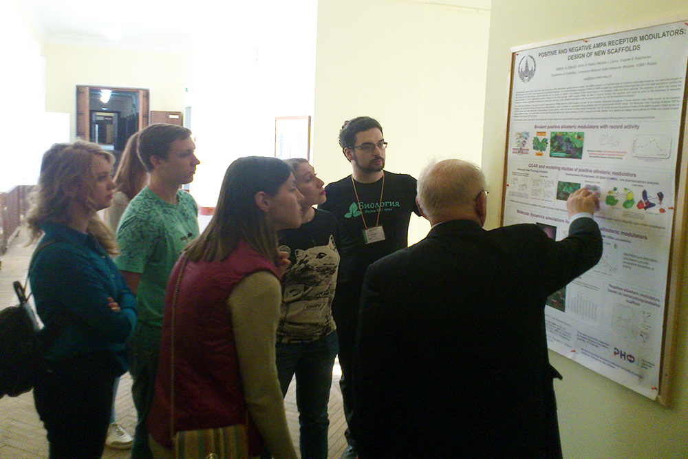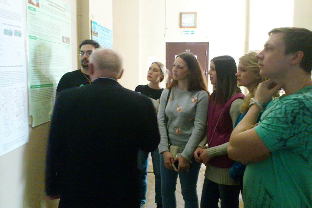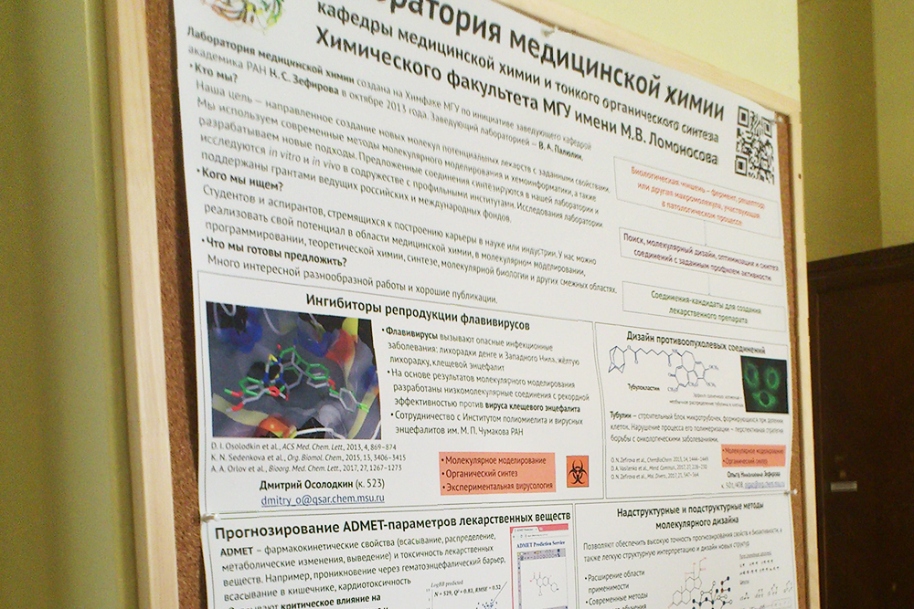 В ходе экскурсии Владимир Александрович рассказал о направлениях работы лаборатории и особенностях учёбы на химическом факультете. Он отметил, что акцент в лаборатории делается на научные исследования по созданию новых молекул, обладающих заданными свойствами, на основе современных методов молекулярного моделирования и хемоинформатики.