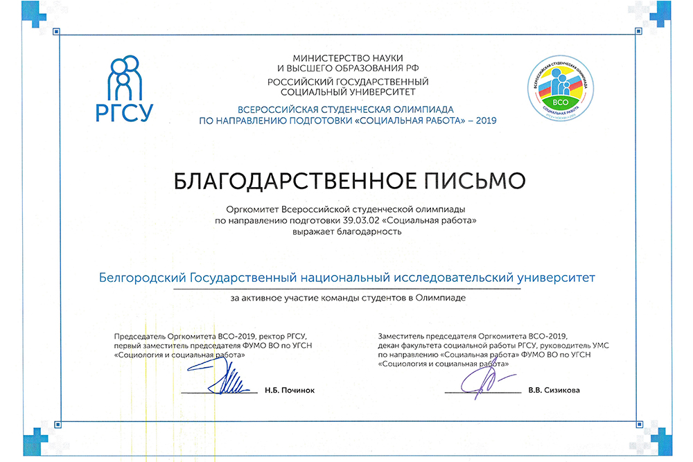 Представители института общественных наук и массовых коммуникаций НИУ «БелГУ» стали призёрами Всероссийской олимпиады по направлению подготовки «Социальная работа»