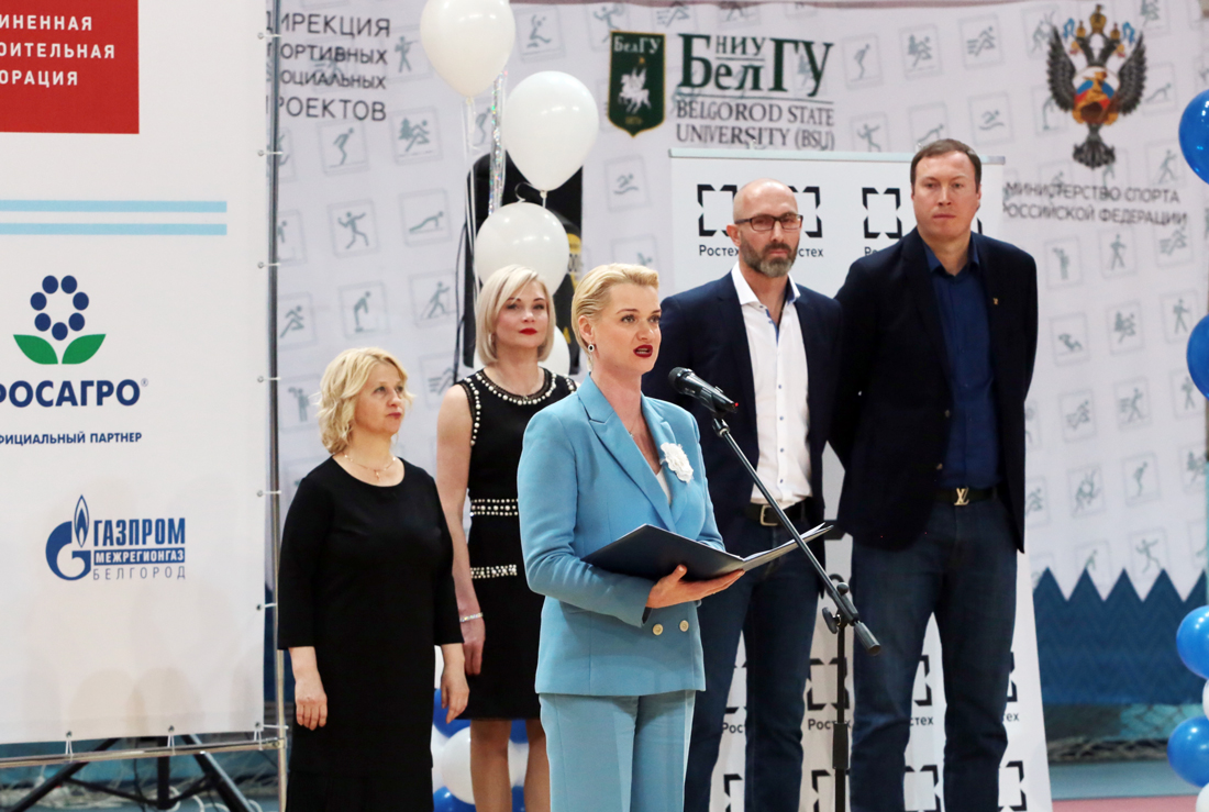 Двукратная чемпионка Олимпийских игр по спортивной гимнастике Светлана Хоркина, отвечая на вопросы журналистов, отметила, что в Белгородской области и в НИУ «БелГУ», в частности, созданы великолепные условия для занятий спортивной гимнастикой, для развития этого вида спорта. На торжественной церемонии открытия Светлана Васильевна зачитала приветственный адрес заместителя Председателя Правительства Российской Федерации Ольги Голодец.