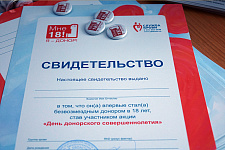 Участники Дня донора, которые сдавали кровь впервые, получили памятные значки и свидетельства.