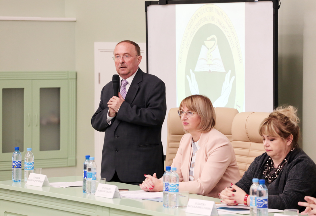 От имени ректора НИУ «БелГУ», профессора Олега Полухина участников конференции приветствовал проректор по образовательной деятельности Александр Маматов. Александр Васильевич рассказал об истории становления университета и появлении в его структуре медицинского института, о развитии его материально-технической базы, совершенствовании образовательного процесса.