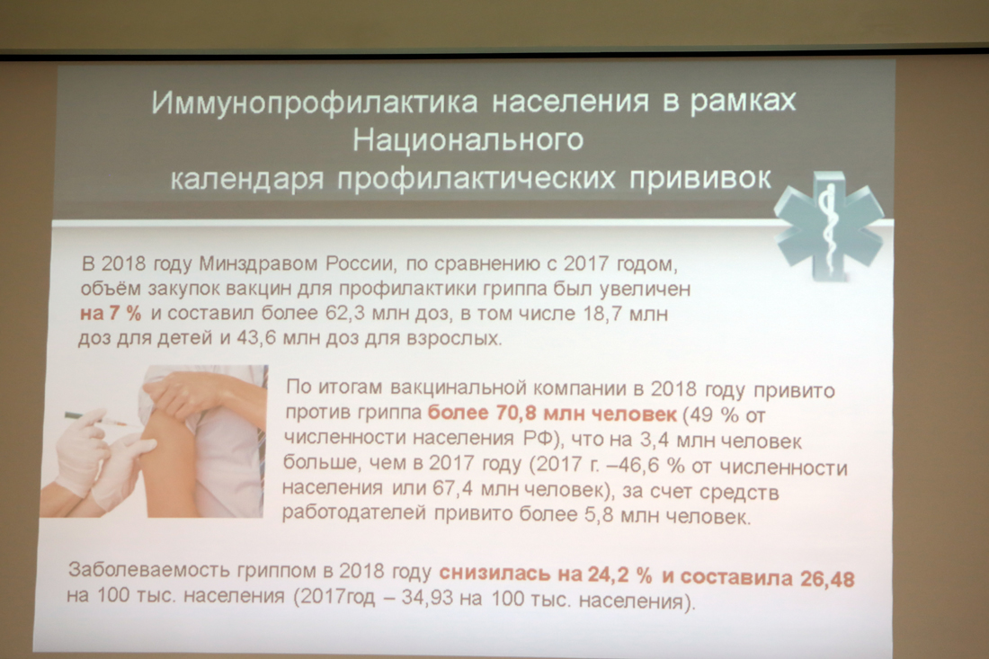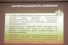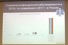 Главный внештатный специалист по инфекционным болезням Министерства здравоохранения Российской Федерации Елена Малинникова в своём сообщении о возможностях и перспективах инфекционной службы России представила статистические данные распространения инфекционных заболеваний в мире и в России, рассказала о факторах, влияющих на инфекционную ситуацию, отметила важность профилактических мероприятий, в частности, проведения вакцинации.