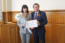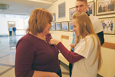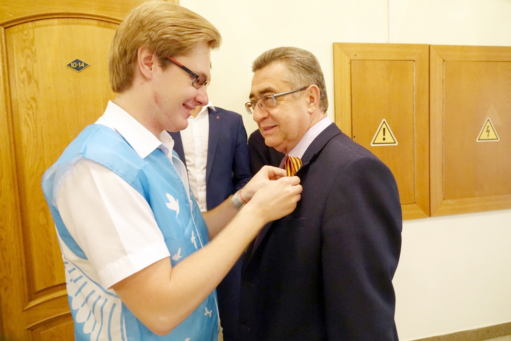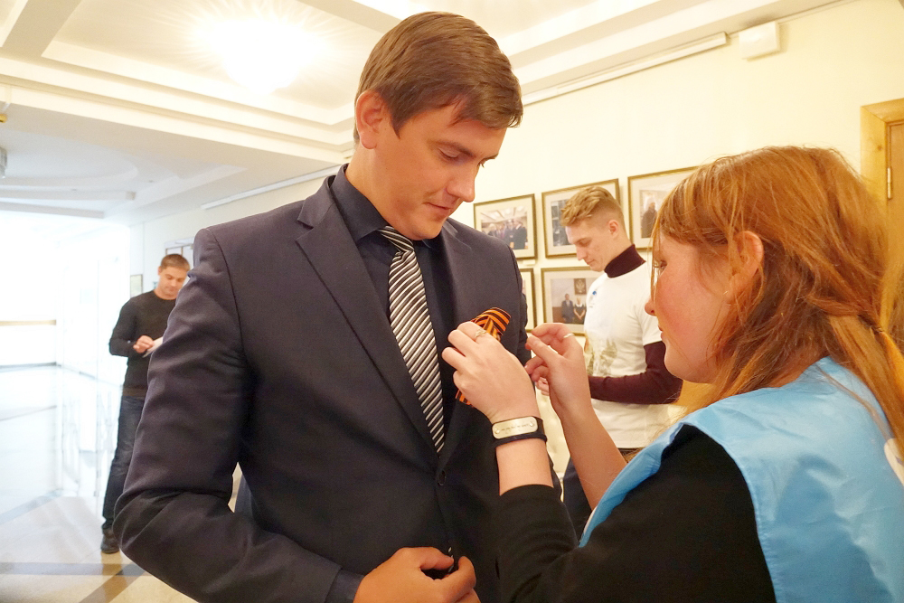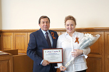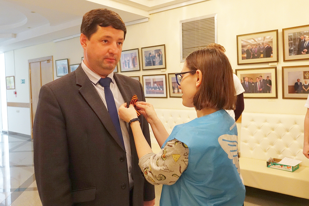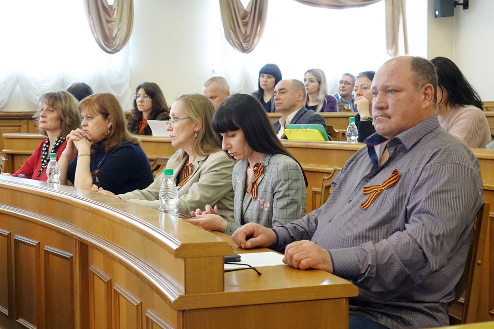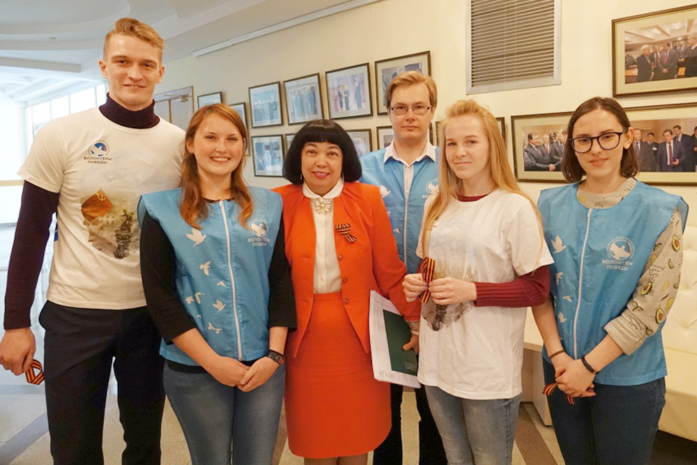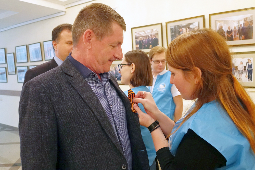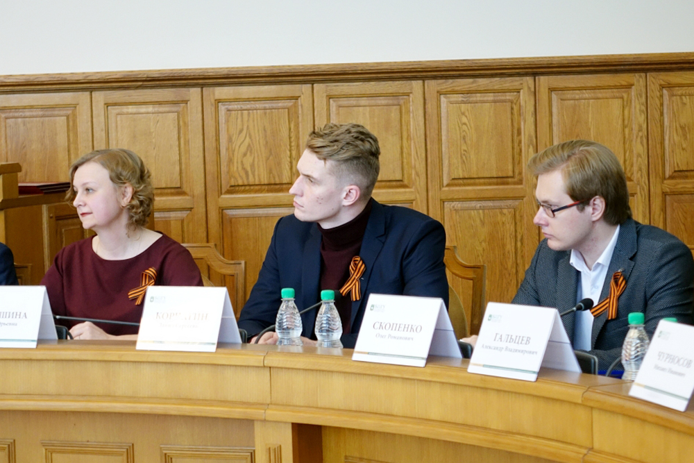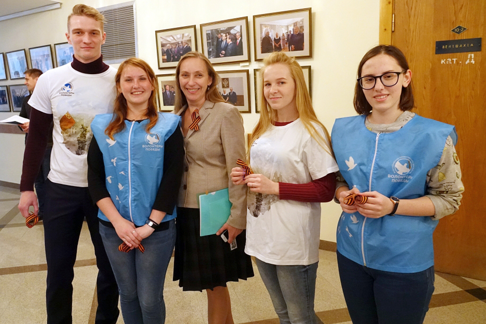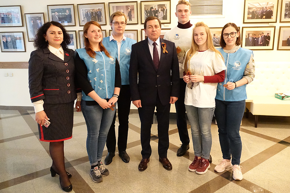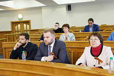 Перед началом заседания учёного совета представители студенческих объединений вручили его участникам Георгиевскую ленточку – символ мужества и героизма. Волонтёры университета присоединились к всероссийской патриотической акции «Георгиевская ленточка», посвящённой 74-й годовщине Победы в Великой Отечественной войне, старт которой состоялся в городе на площадке музея-диорамы 26 апреля.
