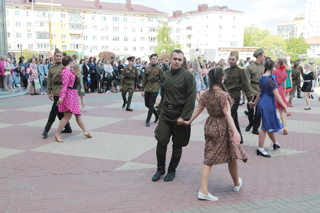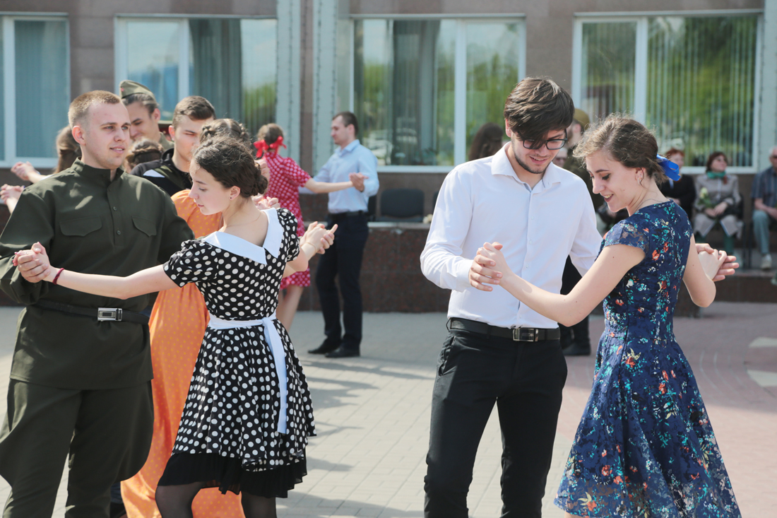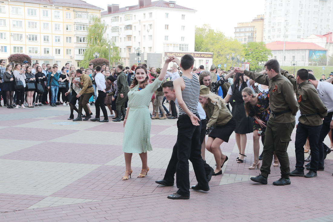 В военно-патриотической акции приняли участие творческие коллективы молодёжного культурного центра НИУ «БелГУ»: арт-студия «Вереск», группа «31-й Регион», коллектив эстрадного бального танца «Вдохновение». Прозвучали песни военных лет, были исполнены хореографические композиции. Студенты танцевали вальс, польку знакомств, краковяк, кадриль, танго. По традиции участники акции пригласили на танец ветеранов.