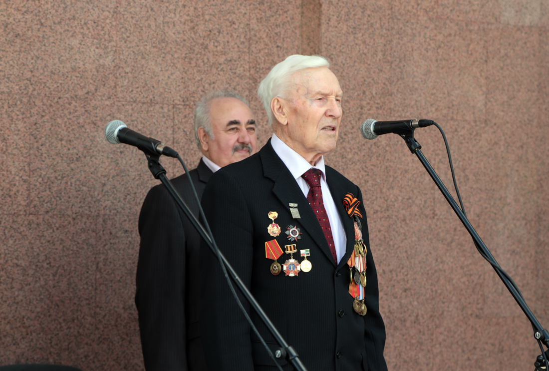 Участник Великой Отечественной войны, почётный профессор НИУ «БелГУ», член Совета ветеранов войны и труда Пётр Григорьевич Коняев выступил с открывающей мероприятие торжественной речью. Он рассказал о значимости великой Победы для русского народа и мира.
