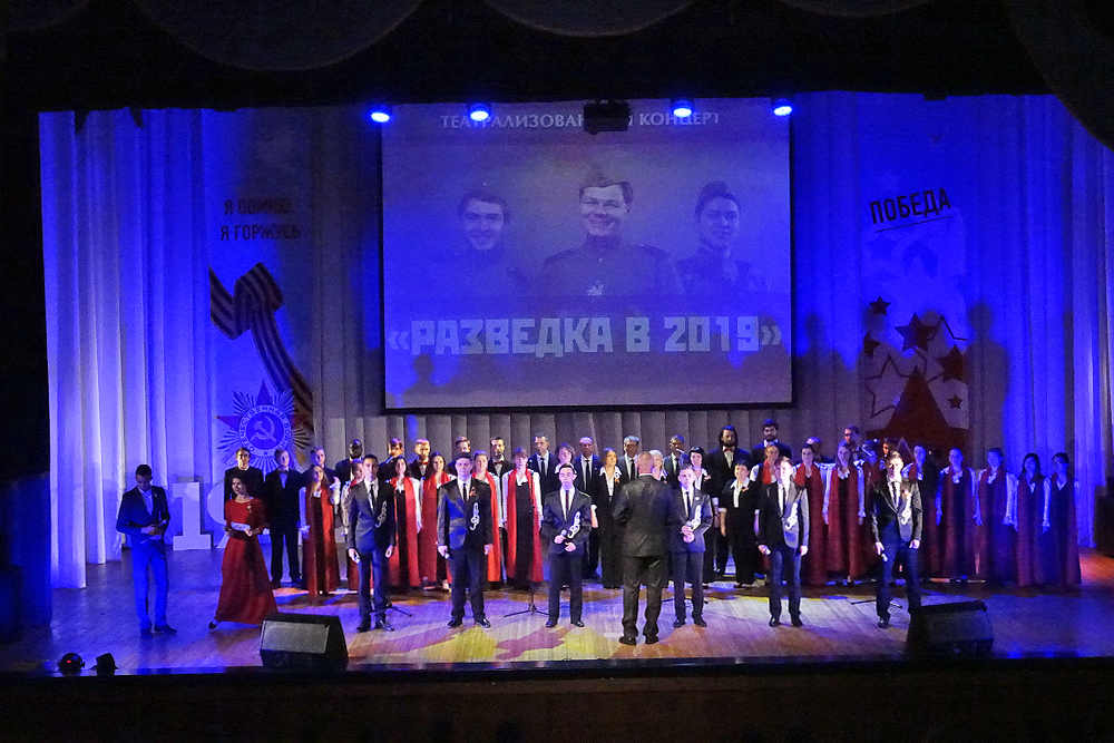 Кульминацией праздничных мероприятий после завершения ректорского приёма ветеранов стал концерт «Разведка в 2019». На входе в молодёжный культурный центр ветеранов, преподавателей, студентов и сотрудников НИУ «БелГУ» встречал ректорский духовой оркестр. В холле МКЦ можно было сфотографироваться в фотозонах.