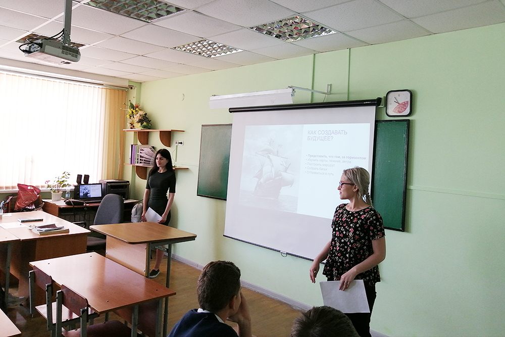 Высшая школа управления Белгородского государственного университета выступила инициатором проведения профориентационных мероприятий в белгородских общеобразовательных учреждениях. На базе белгородской школы №49 с углубленным изучением отдельных предметов было проведено профориентационное занятие со старшеклассниками «Путешествие в будущее». Во время знакомства со школьниками сотрудники Высшей школы управления Ольга Доль и Екатерина Епифанова рассказали ребятам о том, какие профессиональные умения и навыки потребуются современному человеку в ближайшем будущем и каких тенденций развития необходимо придерживаться. Учащиеся 9-10 классов активно участвовали в дискуссии.