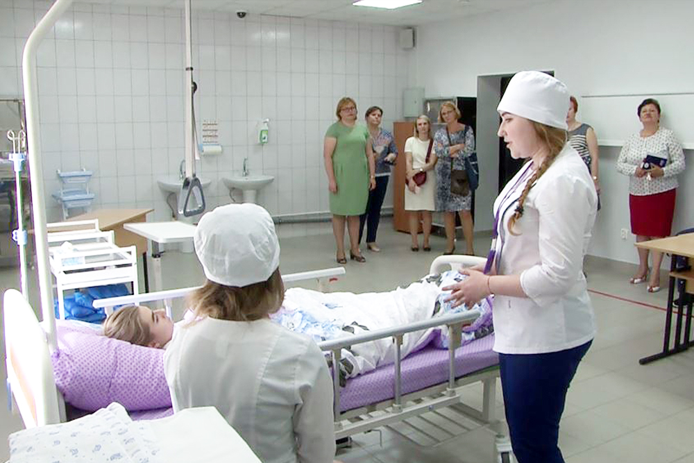 В завершение работы круглого стола Евгений Крикун провёл для Аннемари Ханник экскурсию по колледжу. В симуляционном классе, где в это время велась подготовка к участию в региональном этапе чемпионата «Абилимпикс», студенты показали Аннемари Ханник работу медицинской сестры по уходу за маломобильным пациентом.