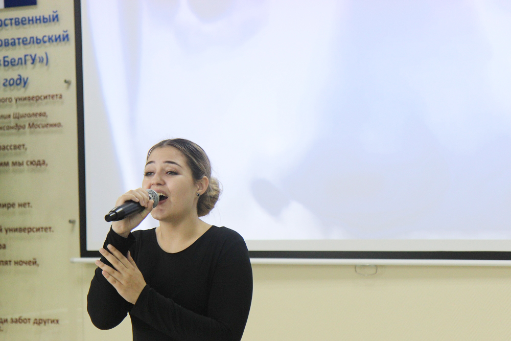 Во время Великой Отечественной войны любовь к своим родным и близким, к Родине вдохновляла бойцов на подвиг, давала силы жить, дарила надежду и веру. Это чувство нашло отражение в песнях, в поэтических строках. Песню «Любовь длинною в жизнь» проникновенно исполнила студентка юридического института Полина Рачинская. Аплодисментами зрители поблагодарили и студентку института общественных наук и массовых коммуникаций Александру Киберлейн за песню «Милосердие», а также студента медицинского института Мустафу Бессем за стихотворение «Помните!»