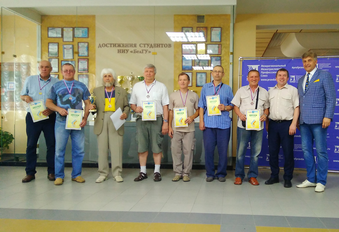 Заместитель председателя межотраслевого профсоюза «Правда» Денис Винокуров поздравил всех ветеранов с праздником Великой Победы и совместно с председателем профсоюзного комитета НИУ «БелГУ» Валерием Тимофеевым и Александром Ивановым вручил всем участникам 1945 года рождения и старше цветы и подарки от профсоюза «Правда». Председатель профсоюзного комитета НИУ «БелГУ» Валерий Тимофеев, подчеркнул, что в НИУ «БелГУ» интеллектуальным играм придается особое значение, и очень приятно наблюдать, когда шахматы и шашки связывают людей разных поколений. Почётный председатель федерации шахмат Белгорода, руководитель клуба ветеранов «Мыслитель» Владимир Павлович Зацепин вручил Благодарность от общероссийской общественной организации ветеранов «Российский Союз ветеранов» Александру Иванову. В соревнованиях приняли участие 4 команды: «НИУ БелГУ» (сотрудники, преподаватели, иностранные и российские студенты, воспитанники ЦРИВС), команда инвалидов Центра адаптивного спорта и физической культуры Белгородской области, команда школьников Белгородской области, команда ветеранов шахматного клуба «Мыслитель» г. Белгорода.