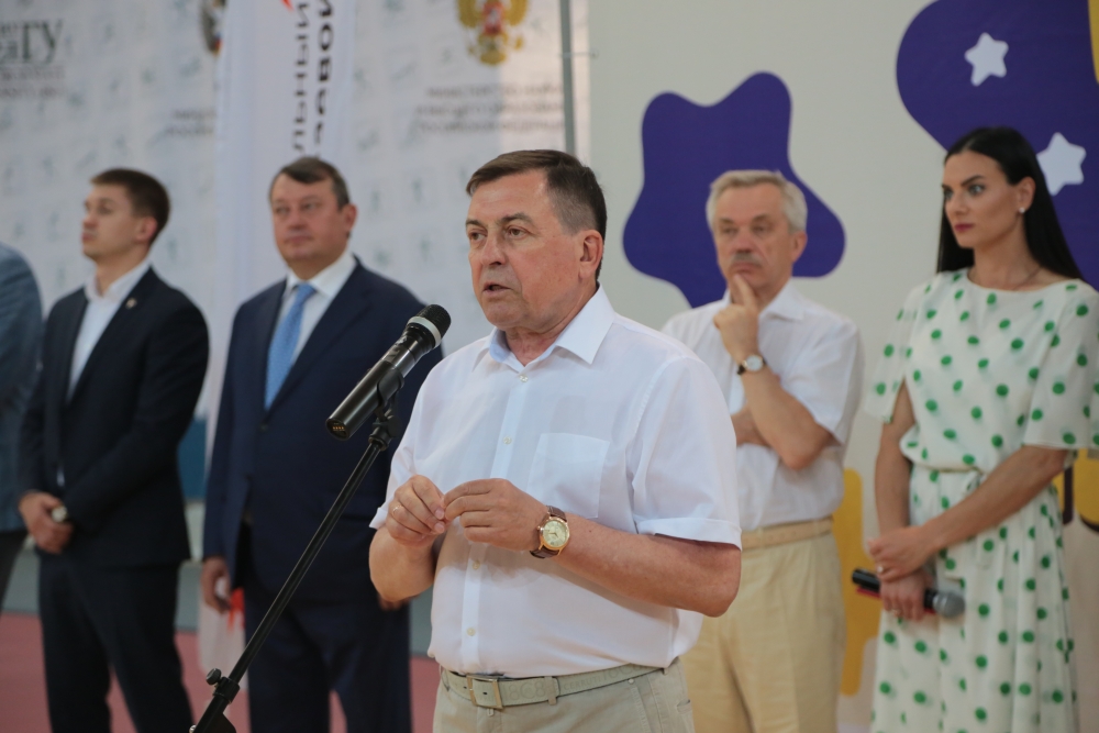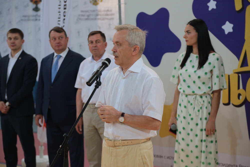 От имени многотысячного коллектива студентов и сотрудников Белгородского государственного университета ребят поприветствовал ректор НИУ «БелГУ» Олег Полухин. Он подчеркнул, что учебно-спортивный комплекс Светланы Хоркиной НИУ «БелГУ» уникален не только по своим масштабам и оснащённости, но и по количеству соревнований разного уровня, в том числе федерального и международного, которые здесь проводятся. Олег Николаевич назвал инновационным подход к организации этого детского праздника, главная цель которого отыскать в ребёнке его творческий и спортивный потенциал.