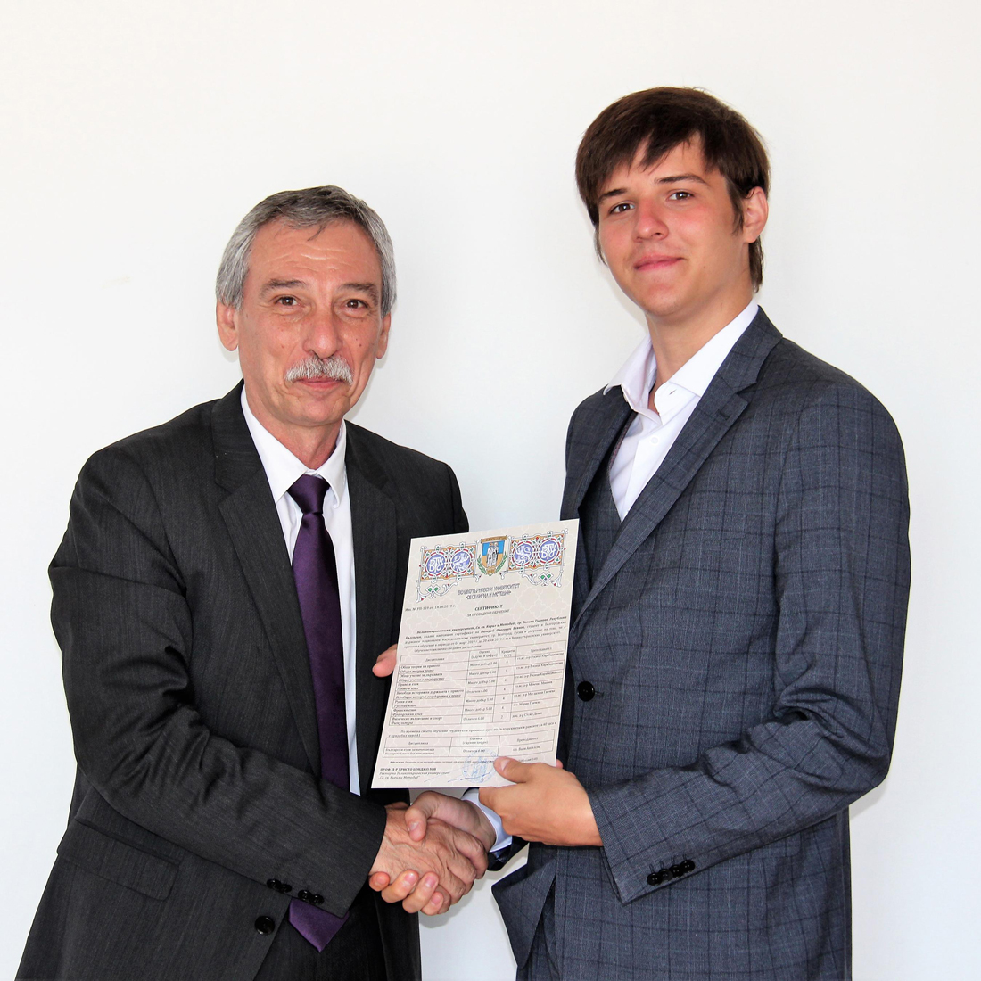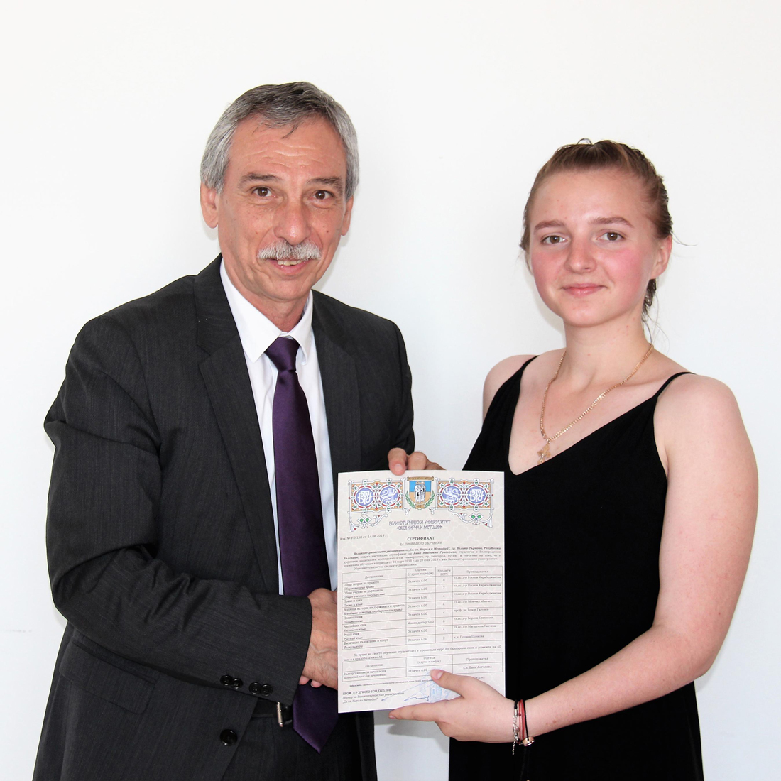 В завершение обучения ректор Великотырновского университета имени Святых Кирилла и Мефодия Христо Бонджолов вручил Алёне Дудиновой, Анне Григорьевой, Елене Глушковой, Валерию Буянову, Полине Сова и Николаю Смагину сертификаты о прохождении обучения по специальности «Право».